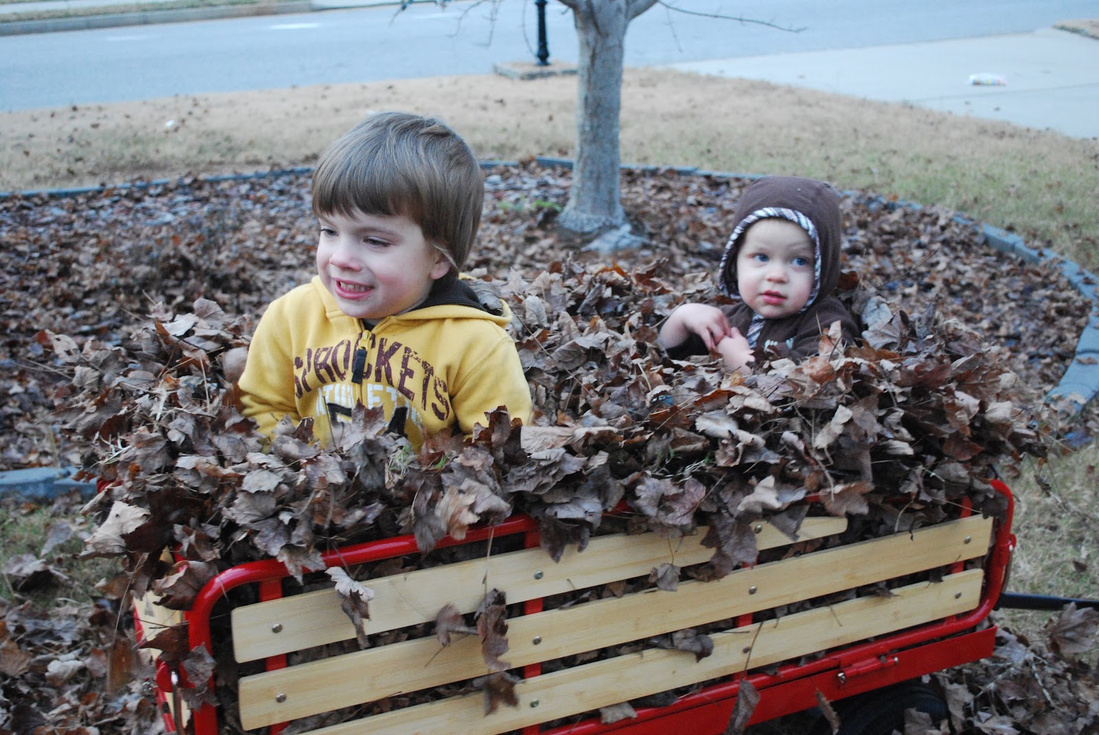 Sunday evening, we had a leaf-raking party and a beautiful sunset.
