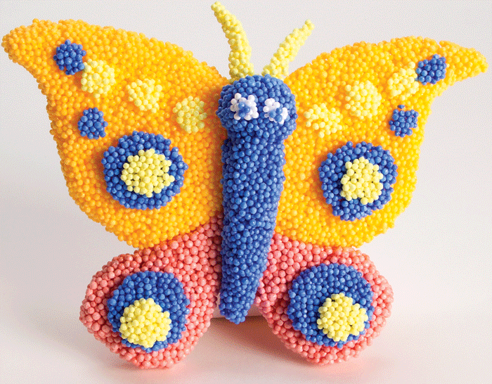 Remember that Play Foam that the boys were playing with yesterday before I whisked “Baby Elijah” off for his nap? Here is a photo I’ve borrowed from PlayFoam to show you what it could look like before preschoolers have mashed all the colors together to make a big confetti-colored pie.